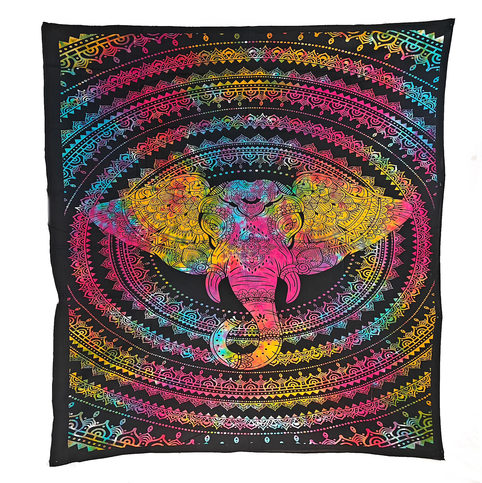 Elevate your home with this unique and vibrant Tie Dye Elephant Face Mandala Tapestry Wall Hanging. Let it inspire positivity, tranquility, and creativity in your living space!