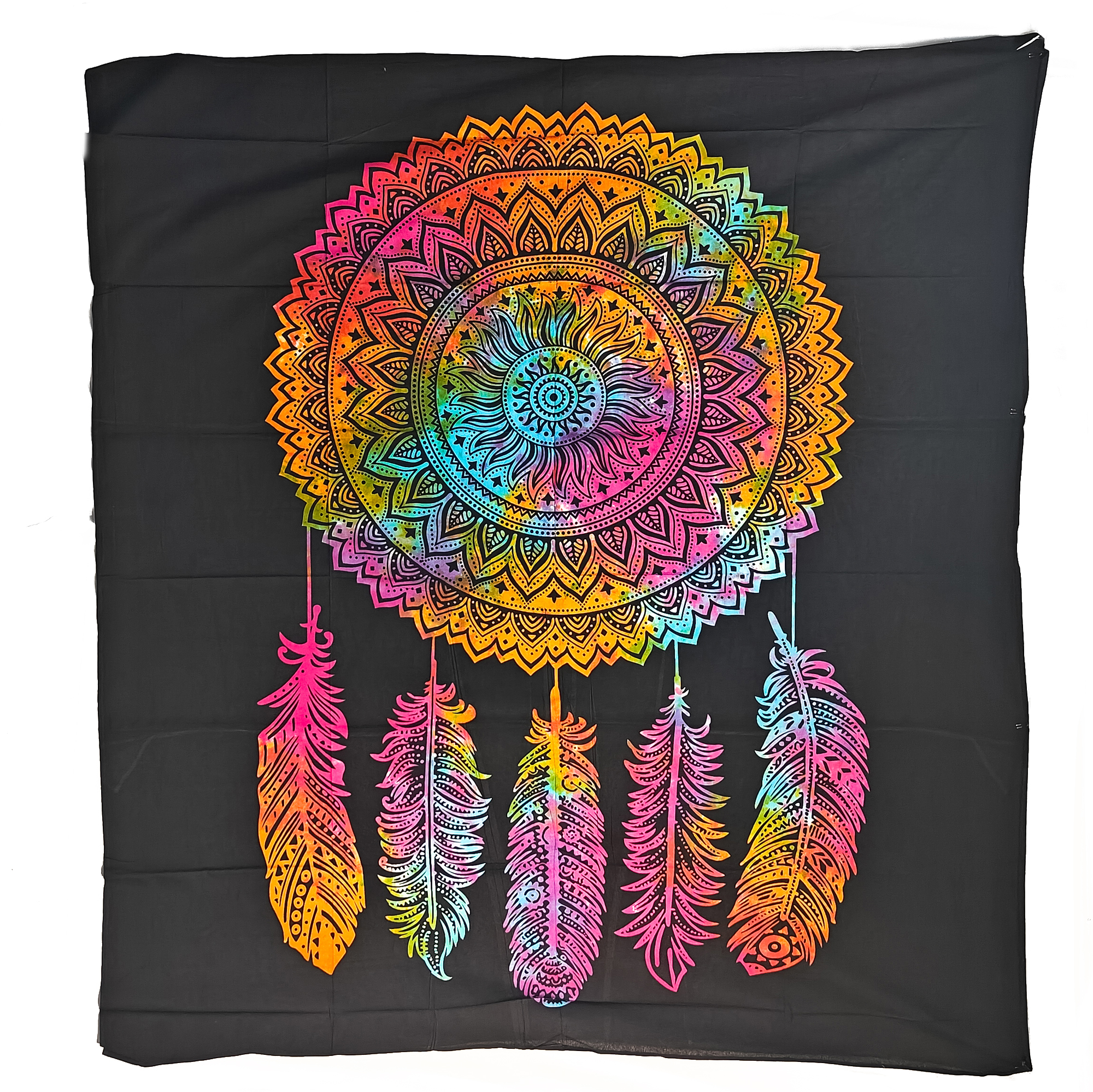 Weave a tapestry of dreams with our captivating Mandala Dreamcatcher Tapestry. This unique blend of ancient symbolism and modern design features a mesmerizing mandala pattern intertwined with a traditional dreamcatcher. Available in both vibrant tie-dye and classic black and white, this tapestry is the perfect addition to any bedroom or living space.