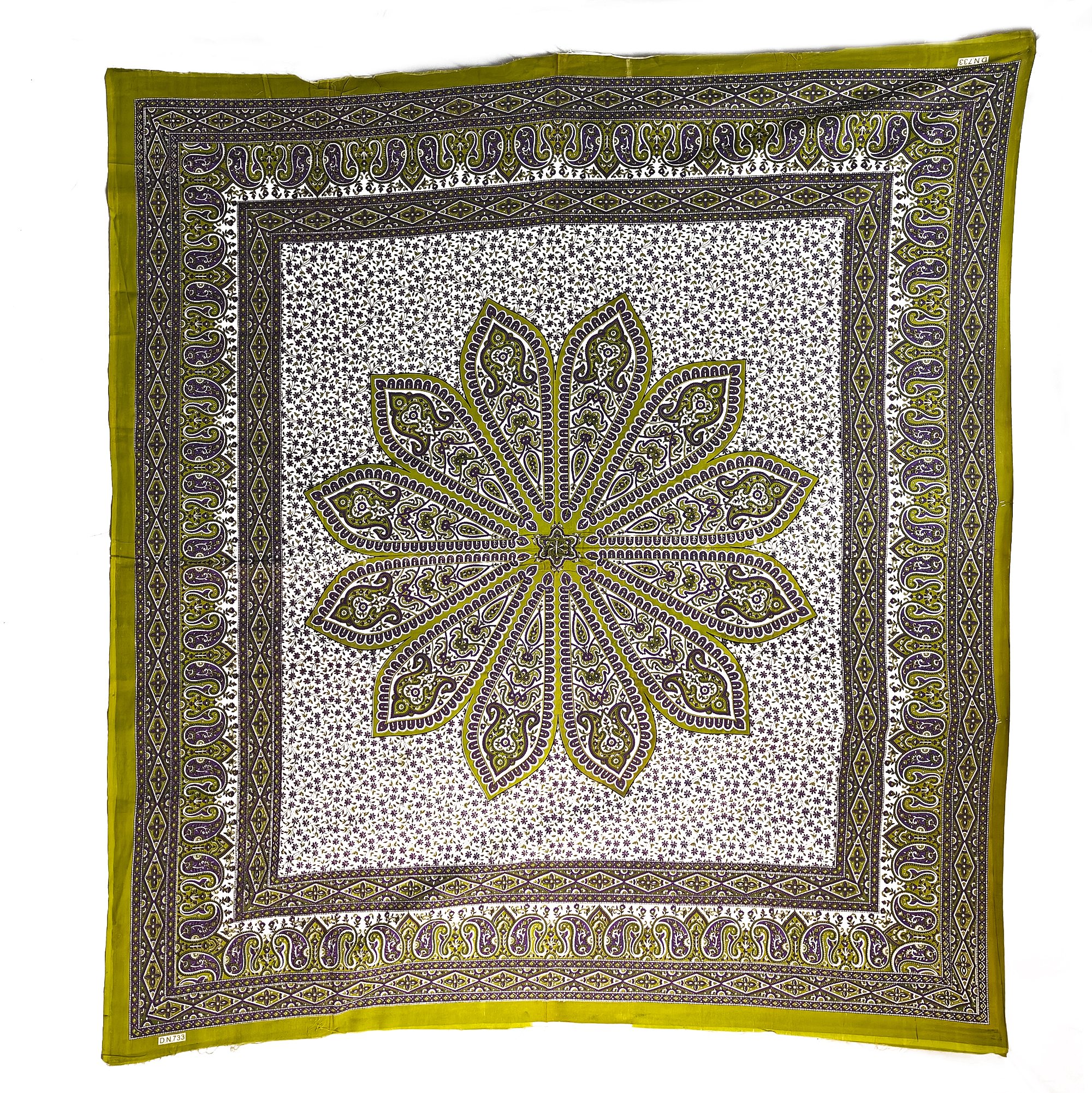 Indulge in the vibrant patterns and rich colors of our Paisley Diamond Chandelier Tapestry. This captivating wall hanging features a mesmerizing paisley design, adorned with a stunning diamond-shaped chandelier motif. Crafted from 100% cotton, this tapestry is both soft and durable, adding a touch of bohemian elegance to any space.